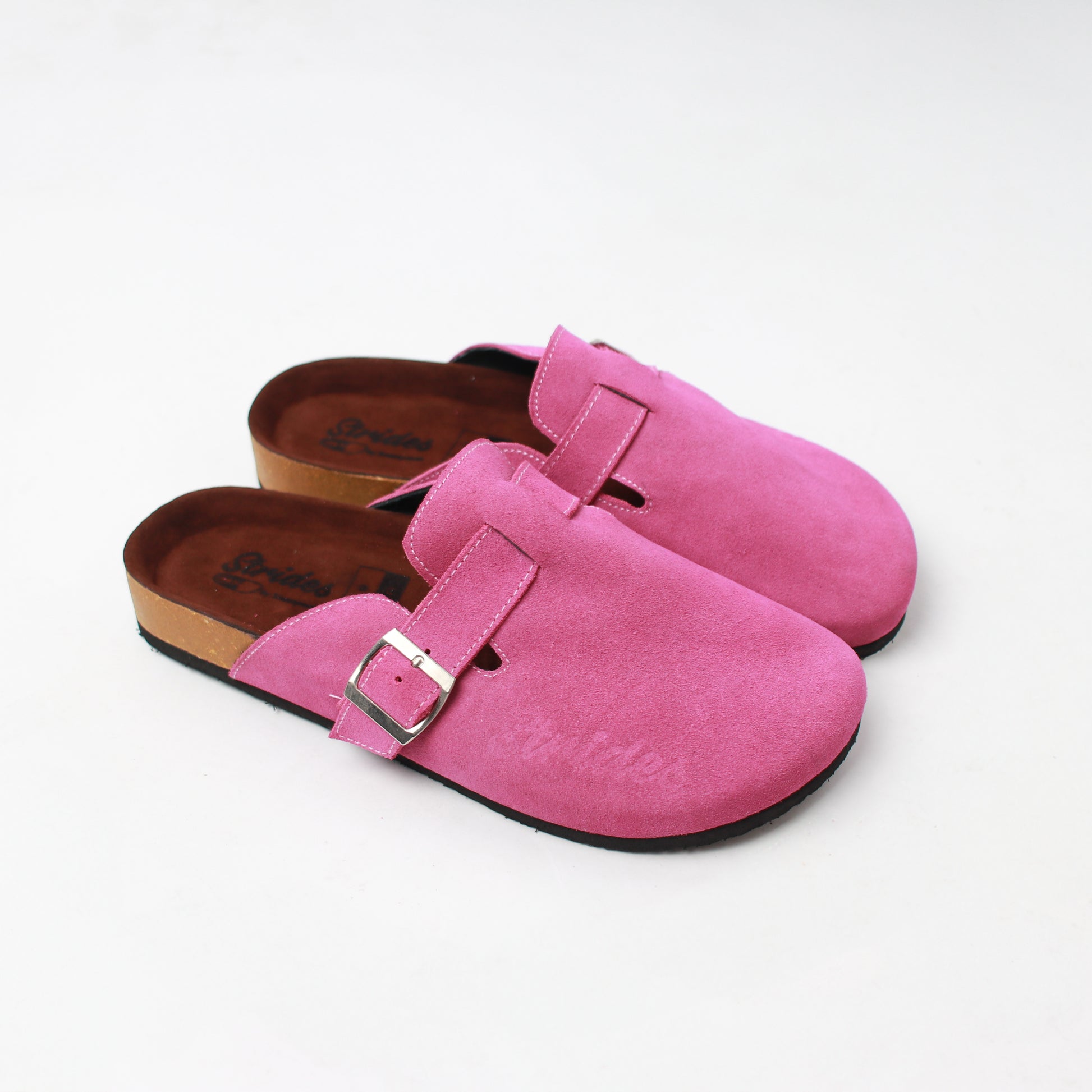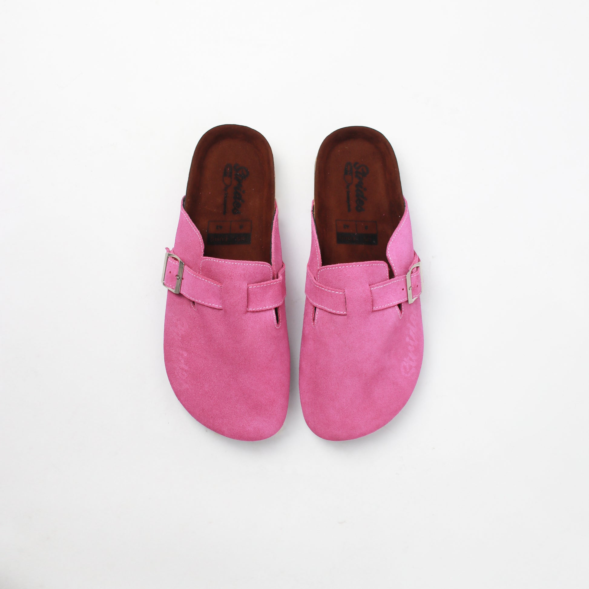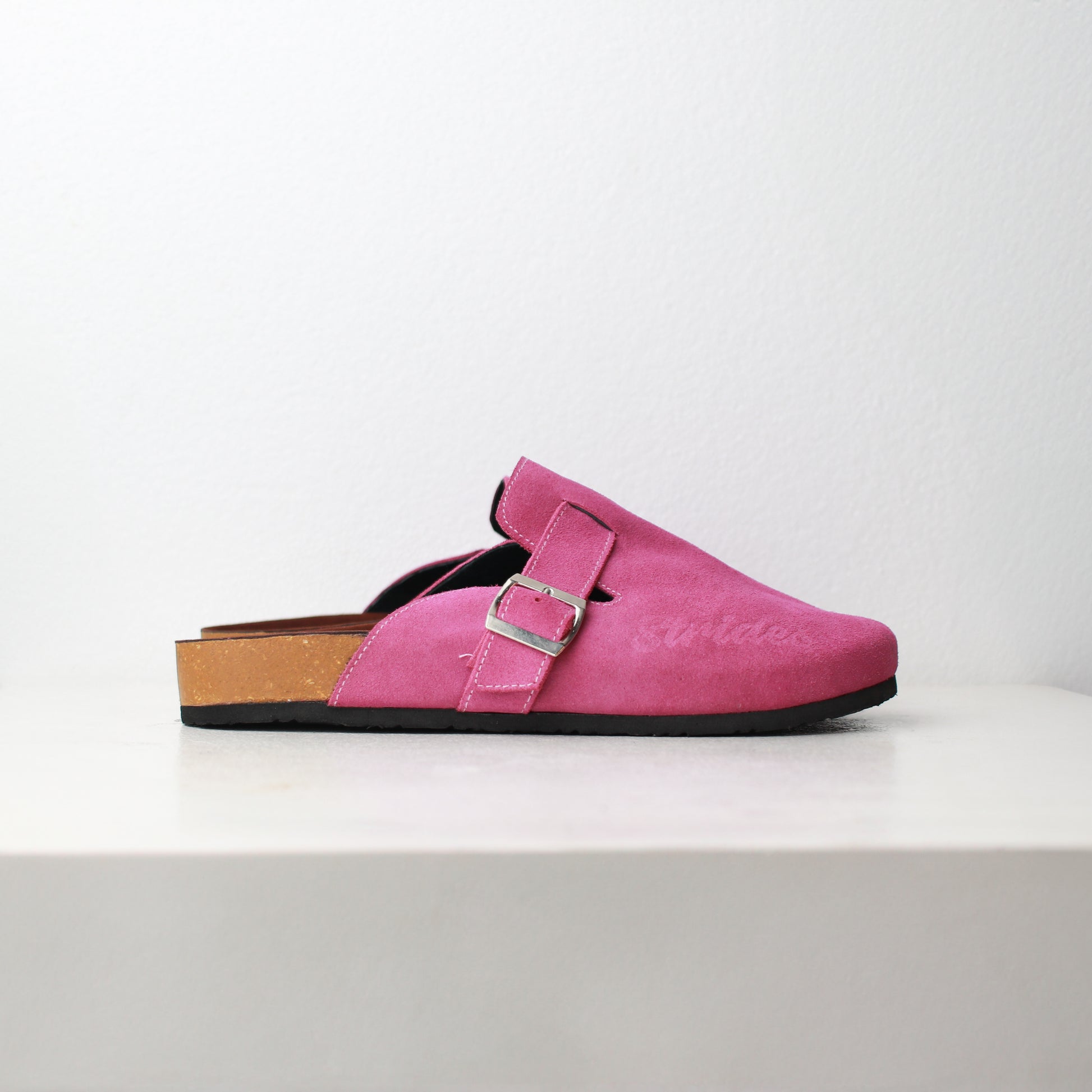 Strides Leather Suede Clogs in Fuchsia Tulip